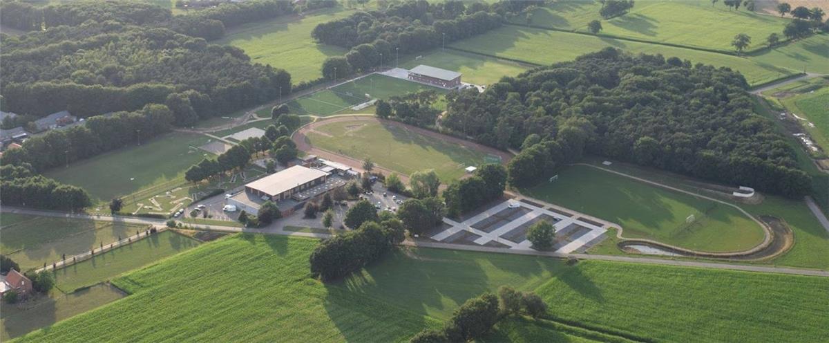 Aanleg sportpark met kunstgras en 3 natuurgras voetbalvelden, atletiekpiste gravel, beachterrein, skatepark, Finse piste en omgevingswerken